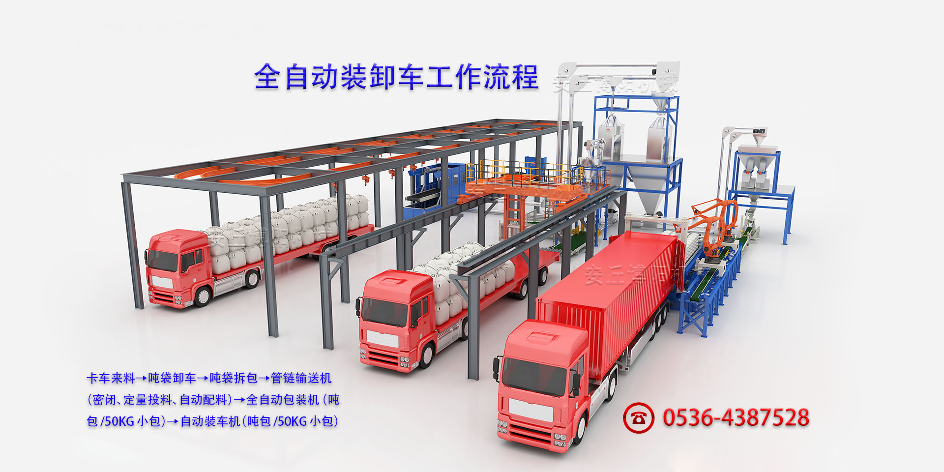 噸袋拆包機+自動拆包機+智能拆包機+拆包機器人→管鏈輸送機→反應釜投料機器人+料倉